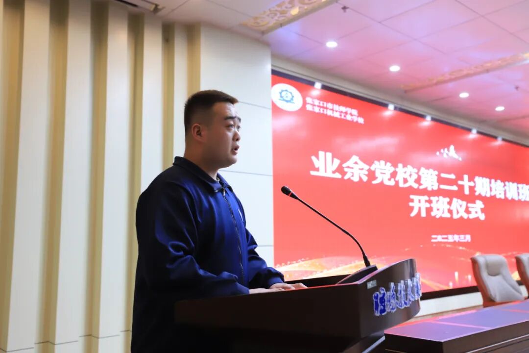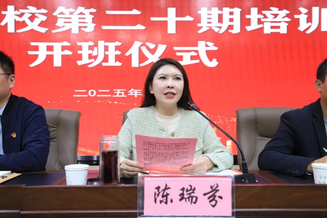 陈瑞芬在致辞讲话中,对参加本次学生业余党校培训的学员表示衷心的祝贺。她强调,业余党校培训班的举办是全面落实“立德树人”根本任务的重要抓手,一是要科学统筹谋划,培训班负责同志要聚焦党的最新理论成果和基层组织建设需求,科学制定分阶段、分层次的培养计划,强化政治引领与能力提升的双重导向。二是要筑牢思想根基,授课教师要精心备课,认真上课,用党的理论体系和实践成效引导广大学子进一步知党、爱党、跟党走,不断夯实党的思想建设和组织建设。三是要坚持理论联系实际,参训学员要深入学习党的知识,做到学深悟透,在实践中求真知,在创新中求突破,争一流、引领时代新风尚,当冠军、练就精湛技能,自觉扛牢新时代青年肩负的历史责任和使命担当。