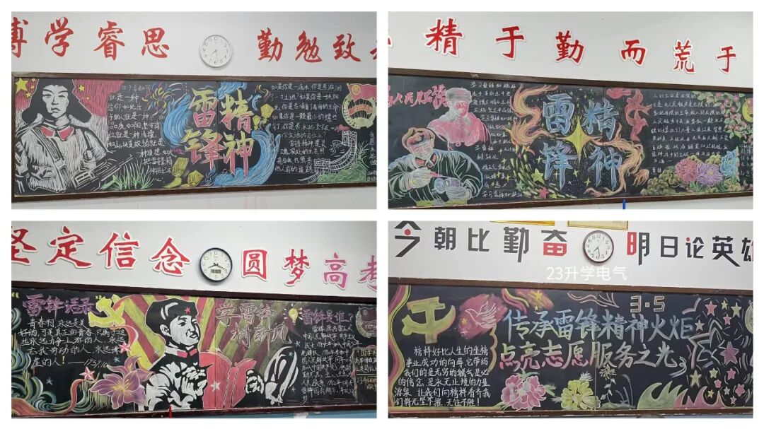 各团支部以“传承雷锋精神火炬 点亮志愿服务之光”为主题,绘制黑板报,以巧思为墨,生动呈现了雷锋同志的感人事迹和高尚精神,这些跃动的线条与色彩,是穿越六十载光阴的青春对话,照亮了志愿者内心的璀璨星辰。
